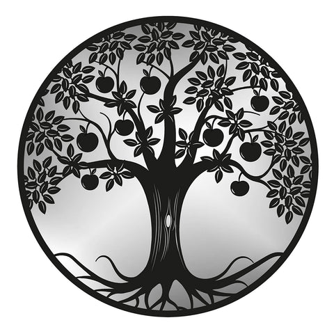 Black Metal Round Apple Tree Silhouette Wall Mirror